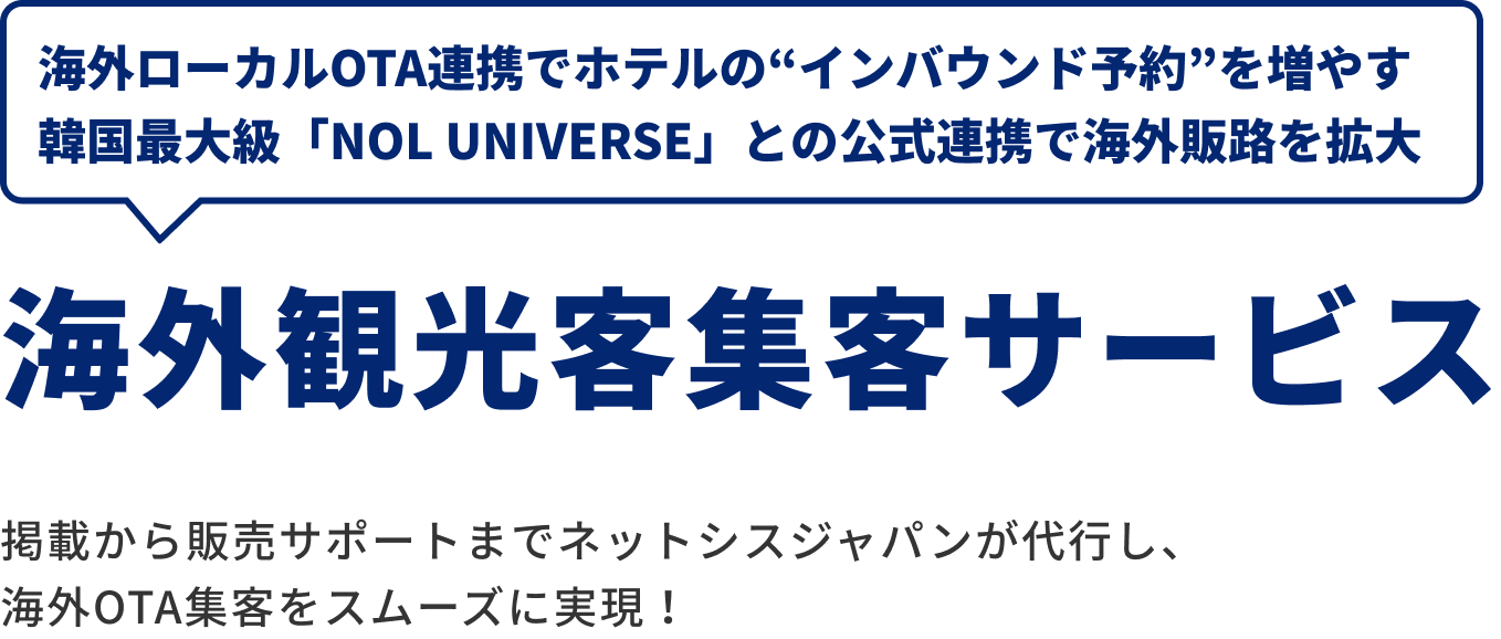 掲載から販売サポートまでネットシスジャパンが代行し、海外OTA集客をスムーズに実現!